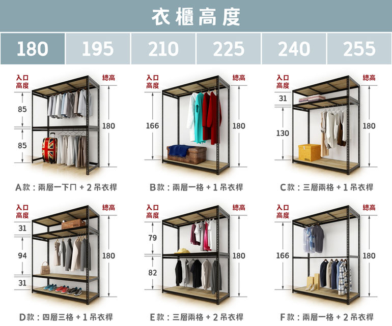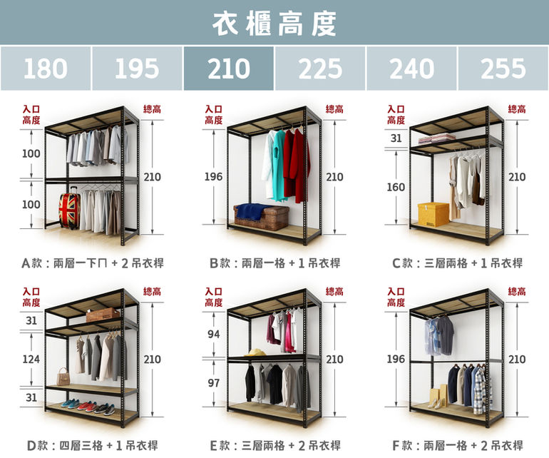 層板、吊衣桿 可以在上下自由調整高度喔!!